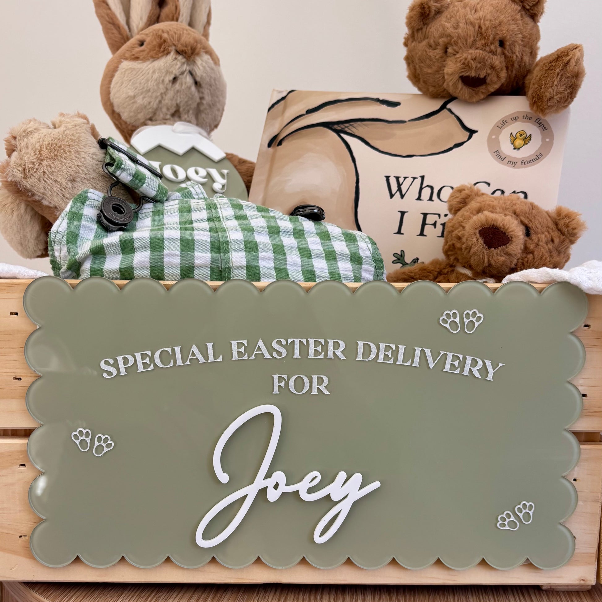 A soft, modern Easter keepsake designed to add a little magic to your Easter setup. This personalised plaque is perfect for shelves, hooks, doors or gift displays and is made to be reused year after year.