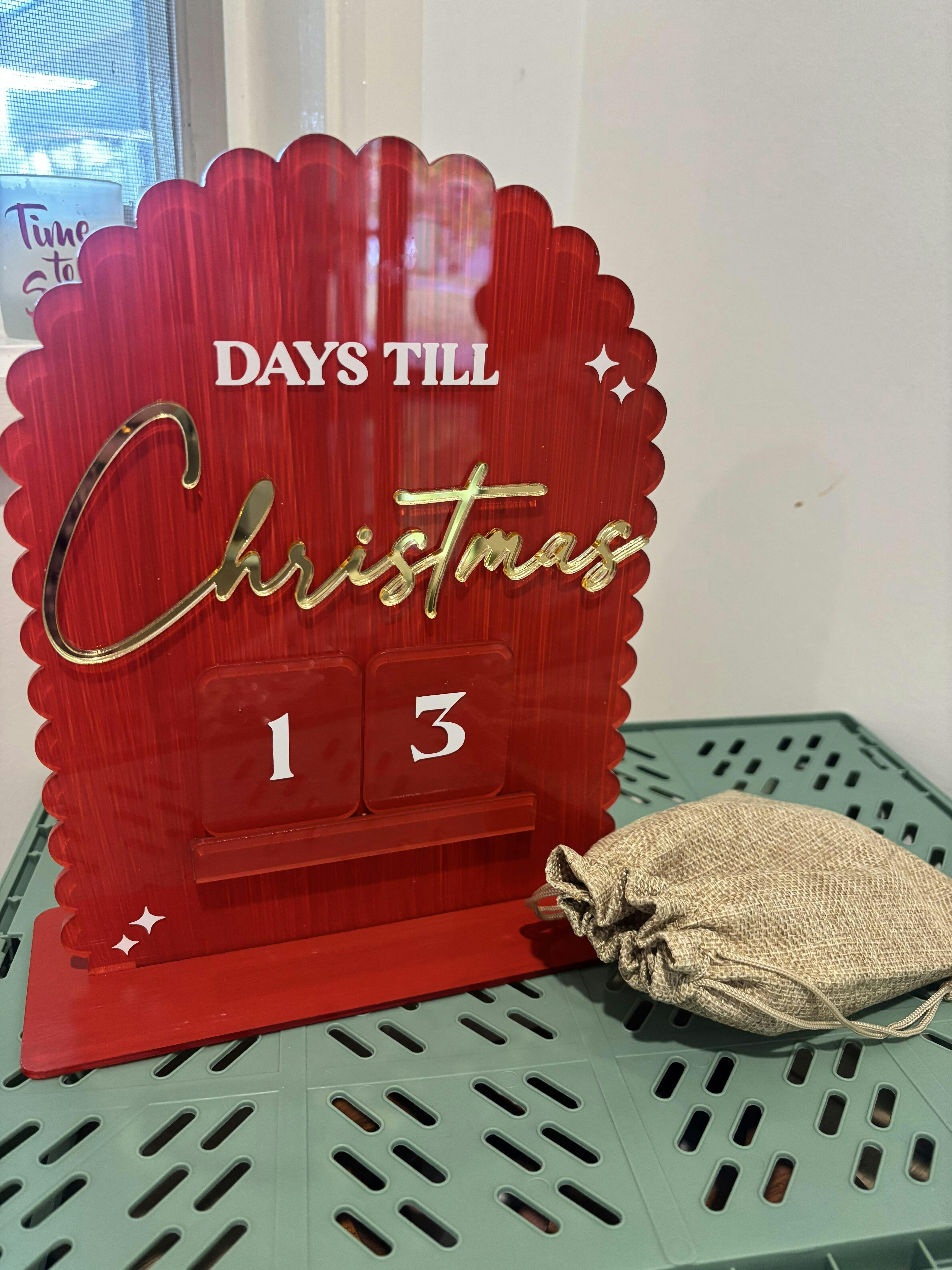 📅 Christmas Countdown Sign – complete with interchangeable acrylic numbers to count down the sleeps until Christmas morning.