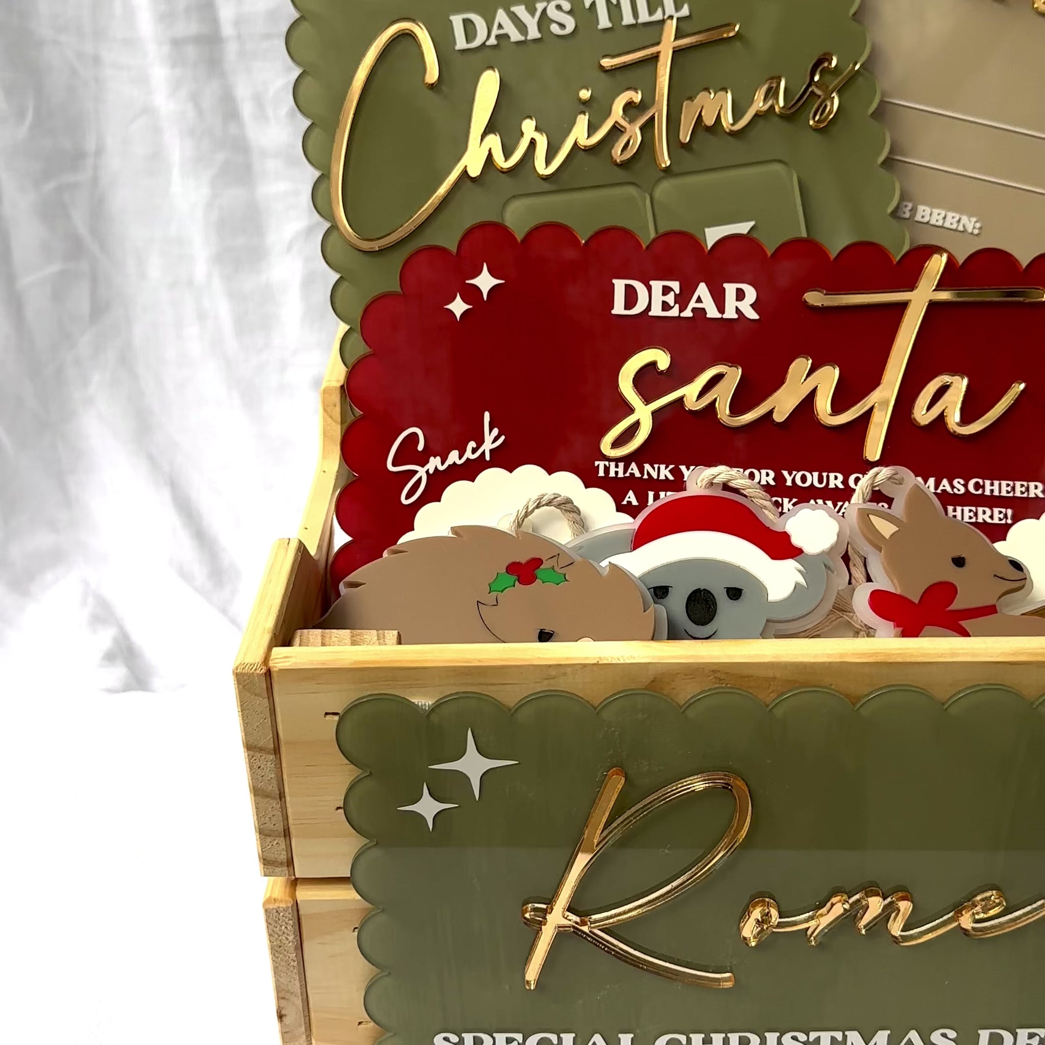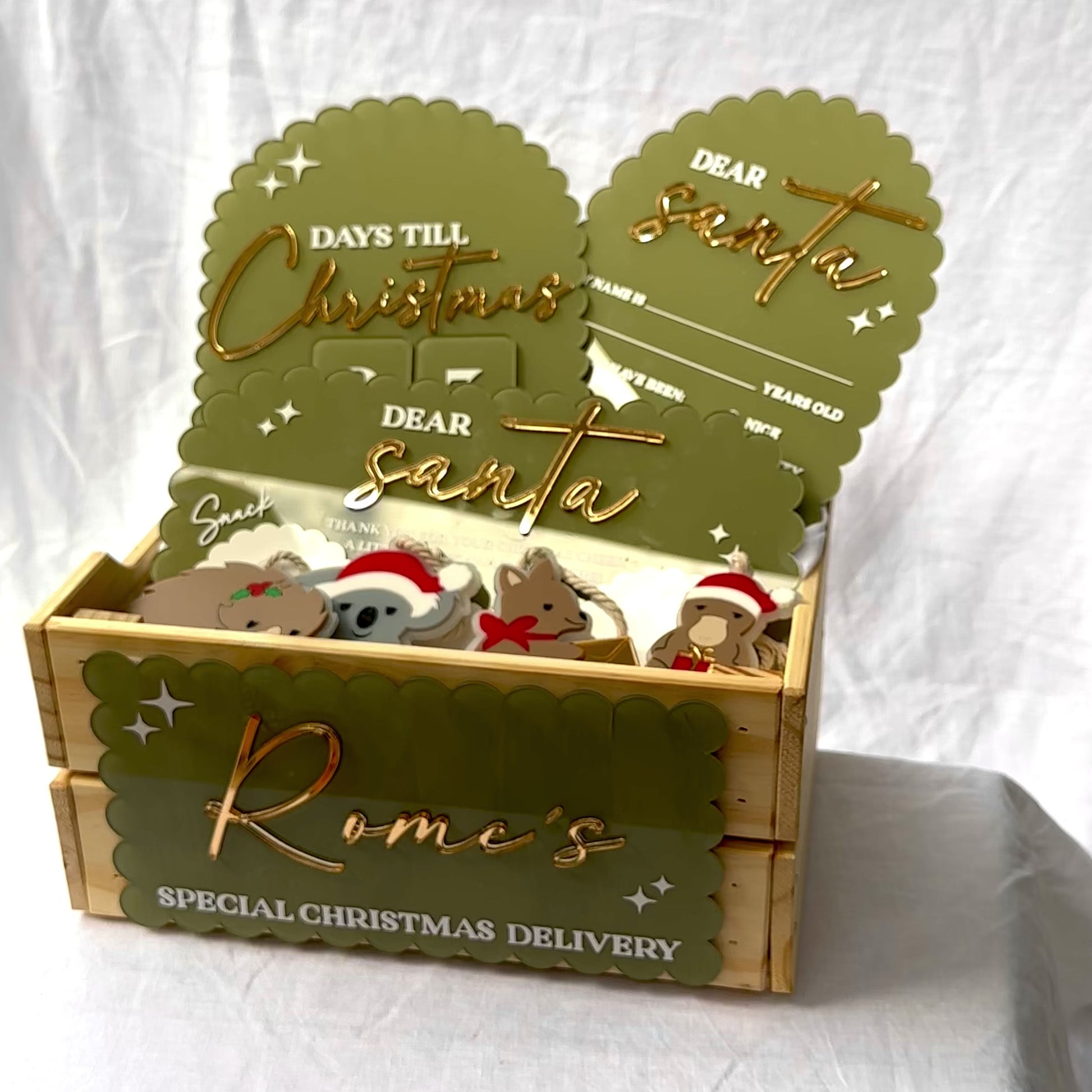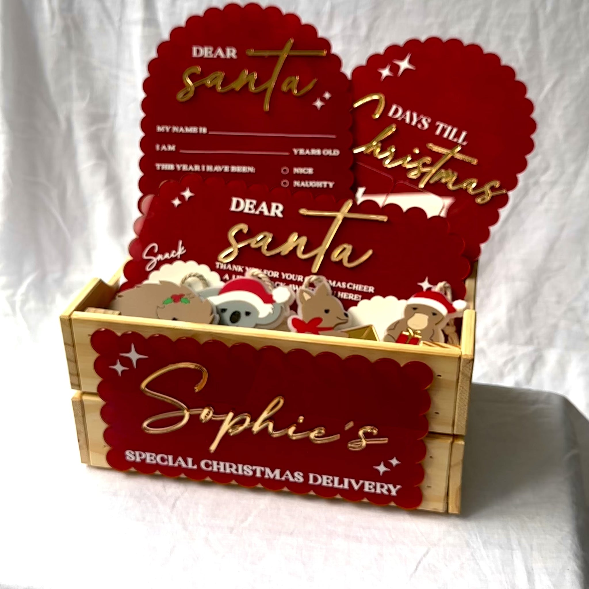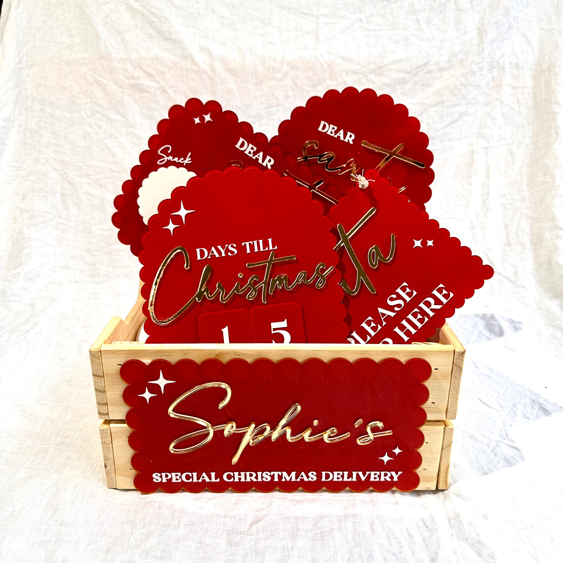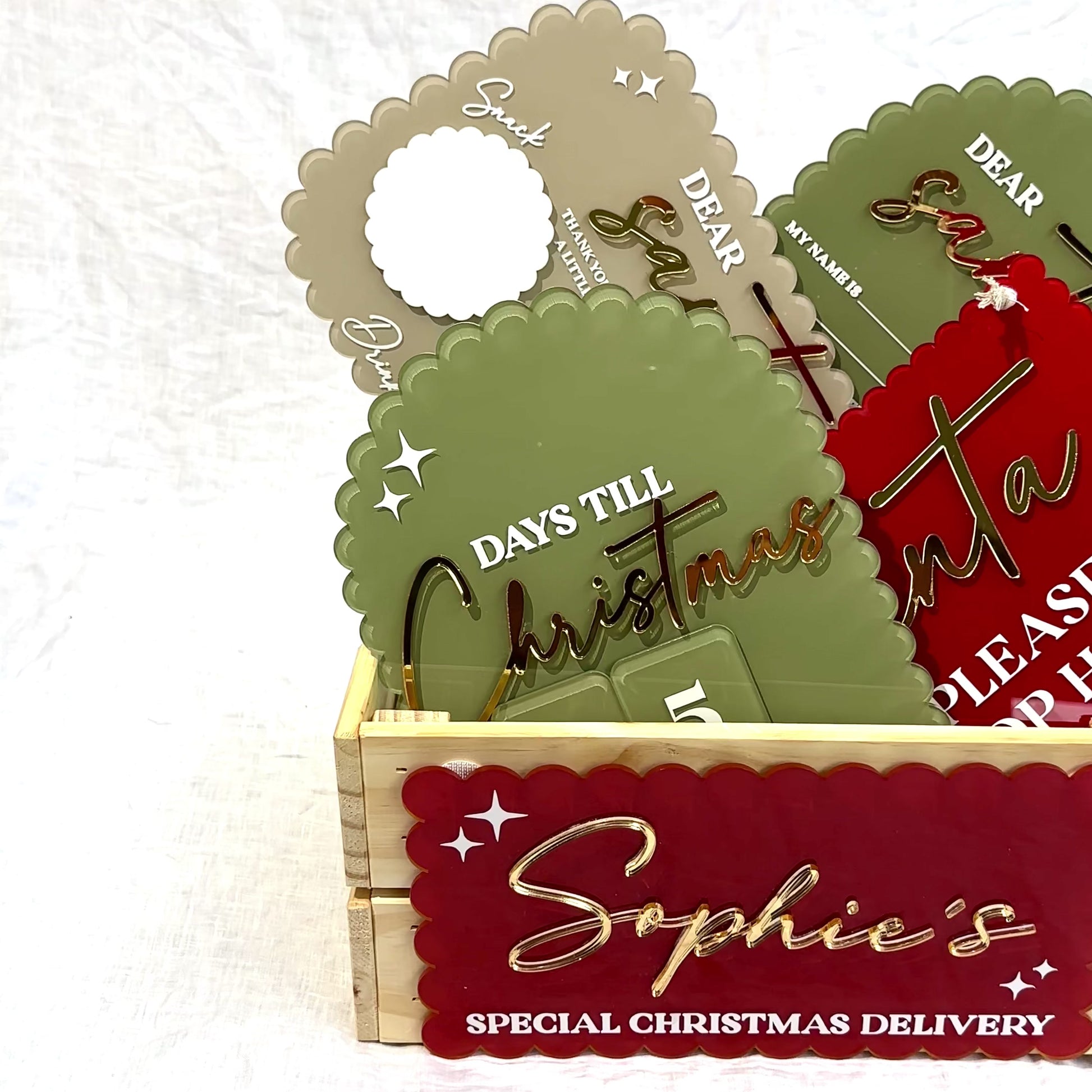 🪵 Custom Wooden Crate – a beautifully crafted keepsake to fill with Christmas Eve treats and surprises.