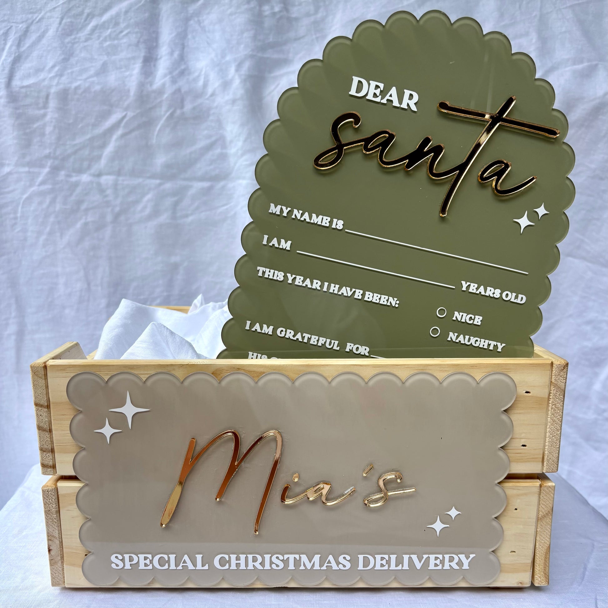 🪵 Custom Wooden Crate – a beautifully crafted keepsake to fill with Christmas Eve treats and surprises.