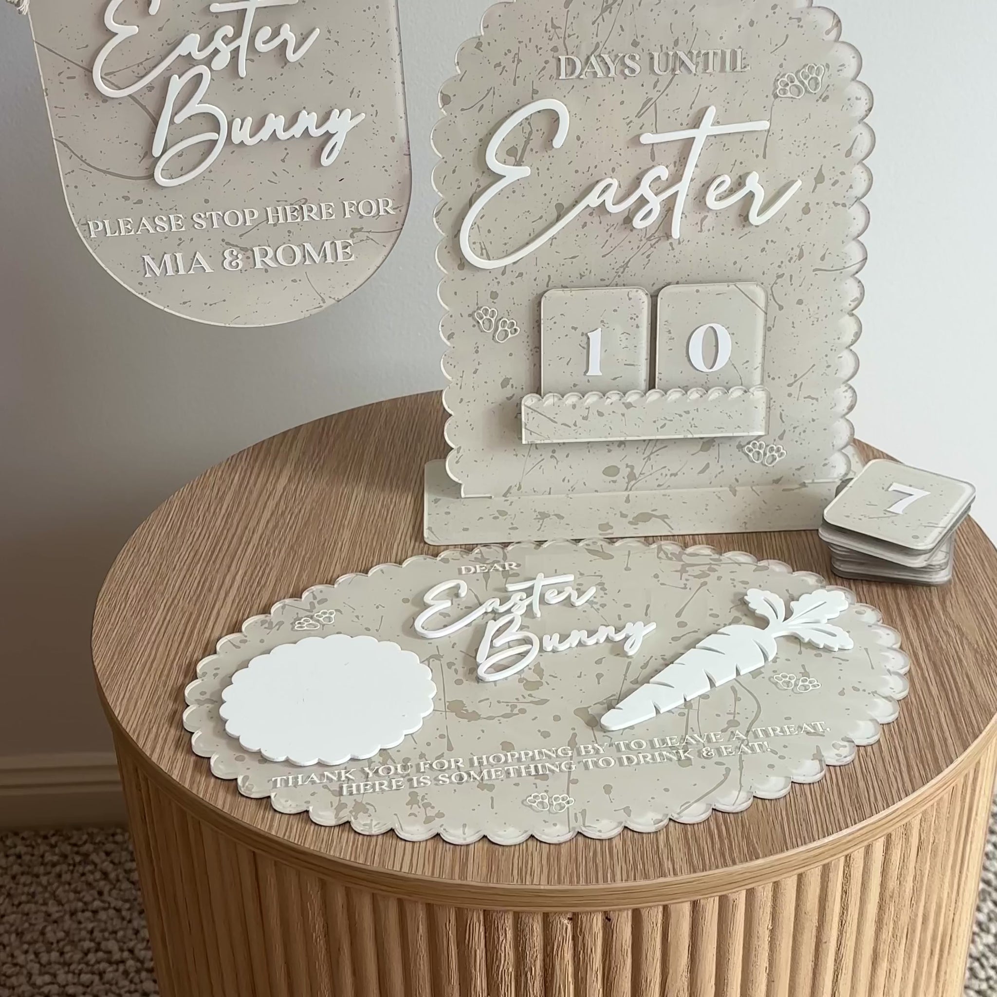 Each countdown is made from premium 2mm acrylic and finished with hand-painted detailing in our signature Easter colour palette. Designed to complement modern Easter décor, this piece is soft, playful, and timeless — perfect for shelves, benches, or Easter displays.