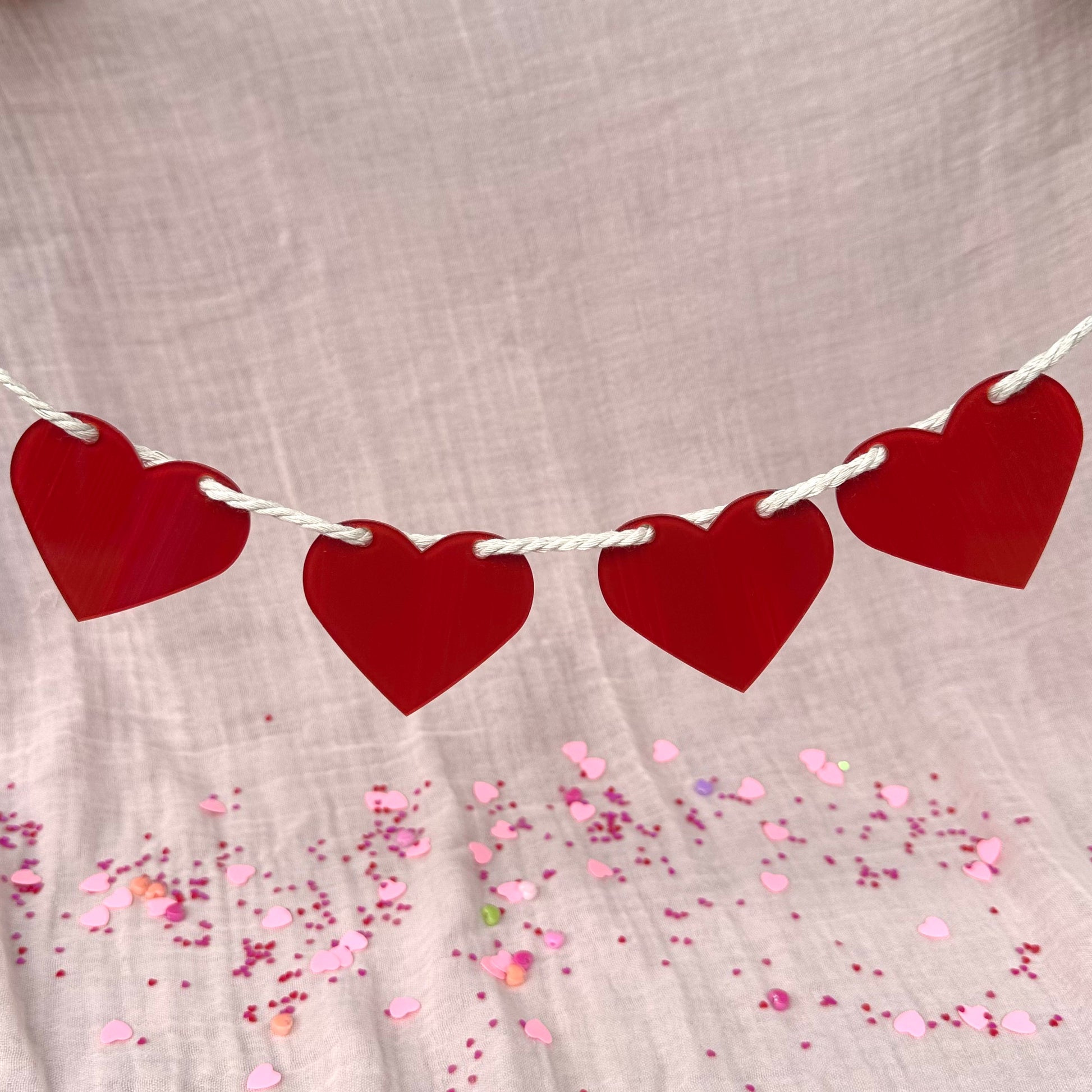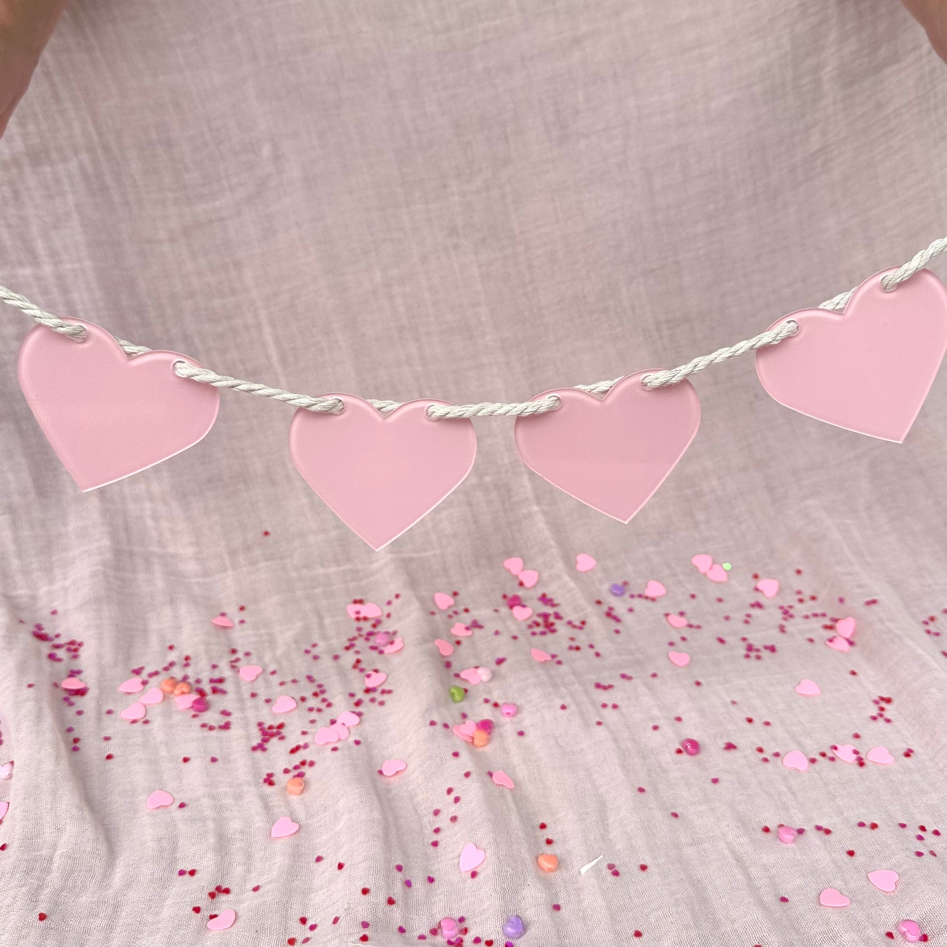 • Acrylic Heart Pennants: Individual heart shapes strung together to create a soft, balanced banner